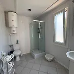 I servizi igienici della villa Amber Coast Domek Nr 2 comprendono anche un bagno con WC separato, un lavandino e una doccia.